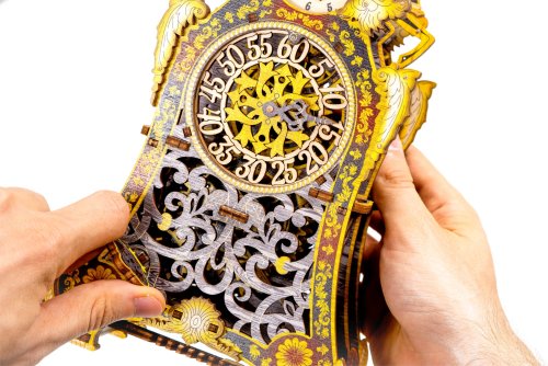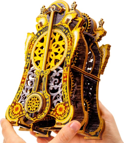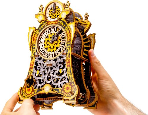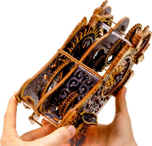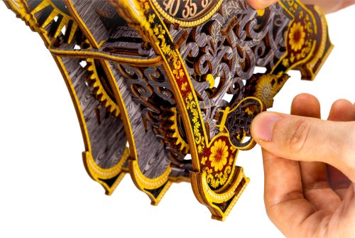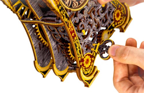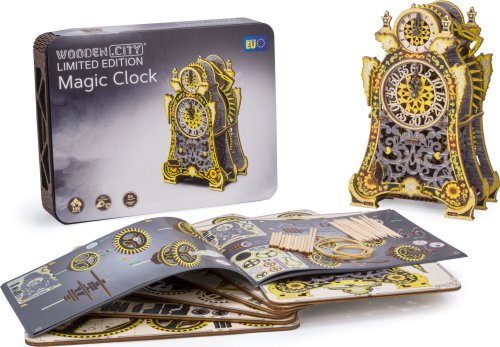 Naše kouzelné hodiny jsou pohádkou, kterou vyprávíte vy. Dva ciferníky, efektní rytiny, otáčející se ozubená kola a stálý rytmus kyvadla. Staňte se kouzelníkem s tímto mechanickým 3D modelem od WOODEN CITY. Kouzelné hodiny Vás přenesou vás do světa Krásky a zvířete nebo její adaptace Kvítek Šarlatový, a co si z takových příběhů pamatujete? Samozřejmě mluvící hodiny Cogsworth! Model hodin je pohádka a věda v jednom: ⠀ - hodiny nejsou jen 3D puzzle, ale skutečně "žijí", - celý mechanismus můžete sledovat a studovat jeho práci, - skládá ze dvou ciferníků - jednoho pro hodiny a druhého pro minuty - hodinového mechanismu a kyvadla, - na jedno natažení vydrží fungovat cca 30 minut, - jsou rafinované, náladové a zároveň harmonické - budou jedinečnou ozdobou vašeho domova, - výrazné barevné prvky díky vysoce přesnému UV tisku, - dřevěná krabička slouží jako podstavec, - sběratelská edice. 3D puzzle WOODEN CITY Magic Clock - Kouzelné hodiny s jemně provedenou dřevořezbou jsou neobvyklým dárkem pro vaše blízké. Obtížnost: 4 z 5 (dle rozdělení Wooden City) Orientační doba na složení: 5 hodin Dřevěné 3D puzzle WOODEN CITY jsou detailně propracované funkční mechanické modely, které se skládají bez lepidla nebo nářadí. Jsou vyrobeny z ekologických dřevěných materiálů - kvalitní březové překližky. S mechanickými dřevěnými puzzle WOODEN CITY zažijete hodiny zábavy při skládání a poznáte převody, gumičkové motory, ozubená kolečka a další součástky z bezprostřední blízkosti.