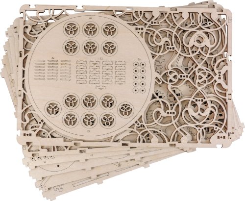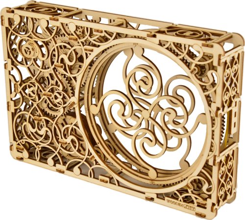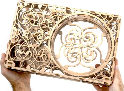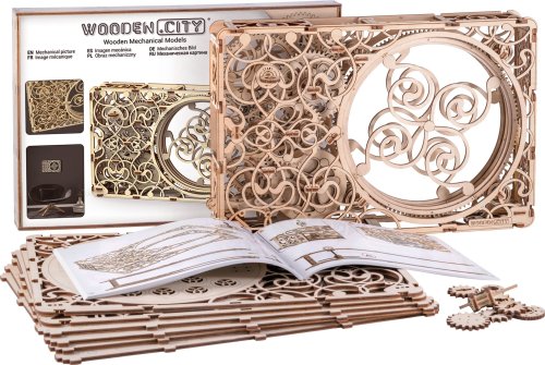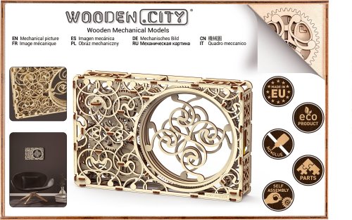 Náš mechanický obrázek je dřevěné 3D puzzle, jeden z našich nejoblíbenějších laserem řezaných dřevěných modelů. Jedná se o živý obrázek, který se aktivuje klíčem. Uvidíte pohyb ozubených kol, které vytváření fascinující mechanický tanec. Všechny části vytvářejí logické vazby v souladu s matematickým výpočtem. Věda a umění splývají v jedno mistrovské dílo. 3D puzzle WOODEN CITY Mechanical Picture neobvyklým dárkem pro milovníky krásy a překvapení. - Spouští se speciálním klíčem, - fascinuje optickou iluzí, - otáčí se pomocí gumičkového motoru, - napětí gumičky je nastavitelné, - k dispozici je spouštěcí páčka, - speciální háček pro zavěšení obrázku na zeď, - doba provozu od jednoho spuštění je 1 minuta. Obtížnost: 3 z 5 (dle rozdělení Wooden City) Orientační doba na složení: 5 hodin Dřevěné 3D puzzle WOODEN CITY jsou detailně propracované funkční mechanické modely, které se skládají bez lepidla nebo nářadí. Jsou vyrobeny z ekologických dřevěných materiálů - kvalitní březové překližky. S mechanickými dřevěnými puzzle WOODEN CITY zažijete hodiny zábavy při skládání a poznáte převody, gumičkové motory, ozubená kolečka a další součástky z bezprostřední blízkosti.