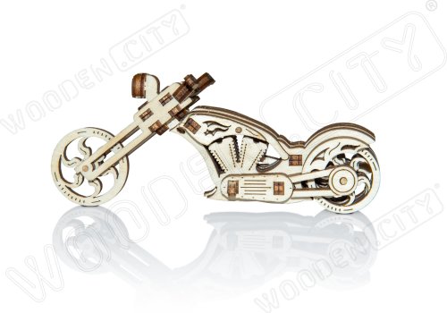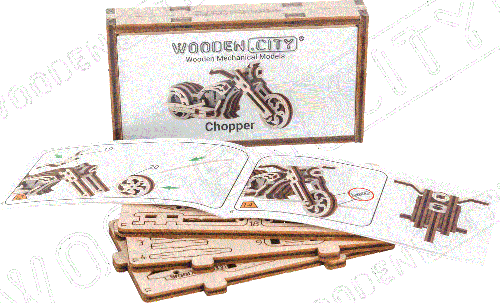 Dřevěná mechanická stavebnice sady Drobností - Widgets obsahuje mini model motorky , který si můžete jen tak vystavit nebo darovat pro radost. Díky jedinečnému designu a detailům modelů bude vaše skládání plné zábavy. 3D puzzle WOODEN CITY Widgets Chopper je drobností, která potěší každého milovníka motorek. Orientační doba na složení: 20 min Dřevěné 3D puzzle WOODEN CITY jsou detailně propracované funkční mechanické modely, které se skládají bez lepidla nebo nářadí. Jsou vyrobeny z ekologických dřevěných materiálů - kvalitní březové překližky. S mechanickými dřevěnými puzzle WOODEN CITY zažijete hodiny zábavy při skládání a poznáte převody, gumičkové motory, ozubená kolečka a další součástky z bezprostřední blízkosti.