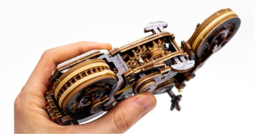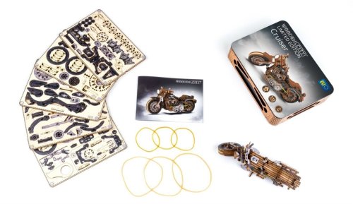 Dřevěná mechanická stavebnice nejúžasnější motorky Cruiser V-Twin na vás čeká!