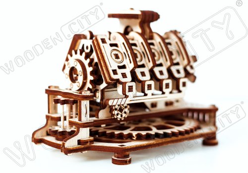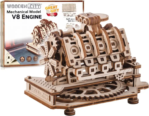 Dřevěné mechanické 3D puzzle spalovacího motoru ve tvaru V, který se používá v závodních vozech Formule 1 . Krása pohybu je v každém detailu tohoto otevřeného mechanismu! Rytmická hudba pístů! Jsme si jisti, že pístový spalovací motor pro vás bude mistrovským dílem technického umění. V8 ENGINE je realistický mini model automobilového motoru. V letech 2006 až 2014 začaly motory V8 používat také formule 1, které zmenšily své rozměry. Během sestavování ve vás náš model motoru zanechá pocit, že si vymýšlíte vlastní motor závodního vozu, který bude jezdit na světových soutěžích. Pohyblivé díly modelu: - 8 válců, - písty, - kliková hřídel, - ventilátor. 3D puzzle WOODEN CITY V8 Engine je skvělým dárkem pro automobilové nadšence, fanoušky automobilových závodů, techniky a mechaniky. Obtížnost: 3 z 5 (dle rozdělení Wooden City) Orientační doba na složení: 3,5 hodiny Dřevěné 3D puzzle WOODEN CITY jsou detailně propracované funkční mechanické modely, které se skládají bez lepidla nebo nářadí. Jsou vyrobeny z ekologických dřevěných materiálů - kvalitní březové překližky. S mechanickými dřevěnými puzzle WOODEN CITY zažijete hodiny zábavy při skládání a poznáte převody, gumičkové motory, ozubená kolečka a další součástky z bezprostřední blízkosti.