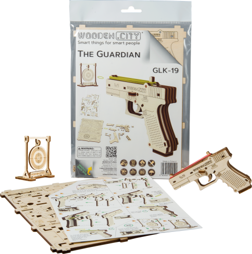 Dřevěná mechanická stavebnice replika skutečné zbraně Guardian GLK-19 je určena pro skutečné odvážlivce. Kromě odvahy budete muset při sestavování tohoto modelu uplatnit také inteligenci. Díky jedinečnému designu a překvapivým detailům tohoto modelu bude vaše trávení času plné zábavy. V modelu jsou zastoupeny detaily skutečné zbraně: - model střílí speciálními náboji v podobě gumiček (součástí výrobku) , - najednou lze vystřelit pět gumiček, - pojistka a zásobník nábojů. 3D puzzle WOODEN CITY Guardian GLK-19 bude výborným dárkem pro každého milovníka střelných zbraní. Orientační doba na složení: 1,5 hodiny Dřevěné 3D puzzle WOODEN CITY jsou detailně propracované funkční mechanické modely, které se skládají bez lepidla nebo nářadí. Jsou vyrobeny z ekologických dřevěných materiálů - kvalitní březové překližky. S mechanickými dřevěnými puzzle WOODEN CITY zažijete hodiny zábavy při skládání a poznáte převody, gumičkové motory, ozubená kolečka a další součástky z bezprostřední blízkosti.