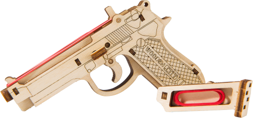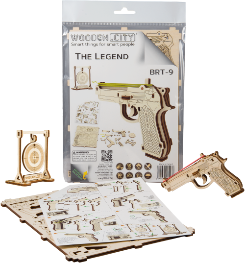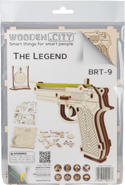 Dřevěná mechanická stavebnice skutečné zbraně Legend BRT-9 je určena pro skutečné odvážlivce. Kromě odvahy budete muset při sestavování tohoto modelu uplatnit také inteligenci. Díky jedinečnému designu a překvapivým detailům tohoto modelu bude vaše trávení času plné zábavy. V modelu jsou zastoupeny detaily skutečné zbraně: - model střílí speciálními náboji v podobě gumiček (součástí výrobku) , - najednou lze vystřelit pět gumiček, - pojistka a zásobník nábojů. 3D puzzle WOODEN CITY Legend BRT-9 bude výborným dárkem pro každého milovníka střelných zbraní. Orientační doba na složení: 1,5 hodiny Dřevěné 3D puzzle WOODEN CITY jsou detailně propracované funkční mechanické modely, které se skládají bez lepidla nebo nářadí. Jsou vyrobeny z ekologických dřevěných materiálů - kvalitní březové překližky. S mechanickými dřevěnými puzzle WOODEN CITY zažijete hodiny zábavy při skládání a poznáte převody, gumičkové motory, ozubená kolečka a další součástky z bezprostřední blízkosti.