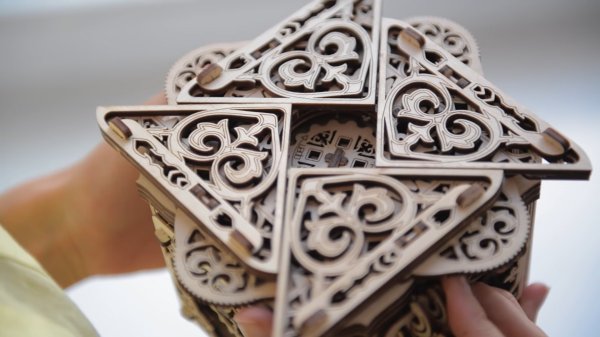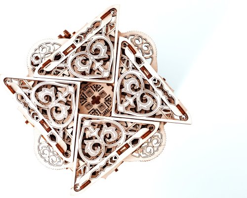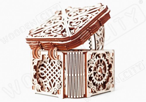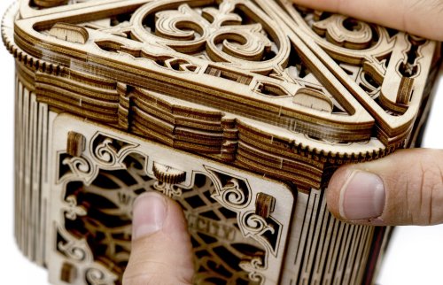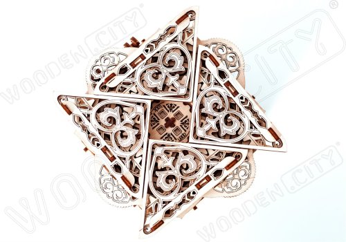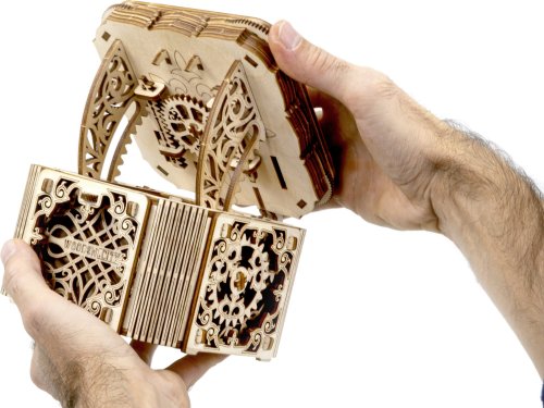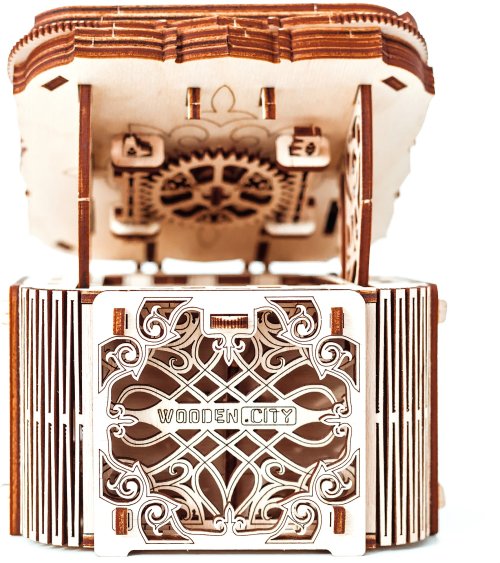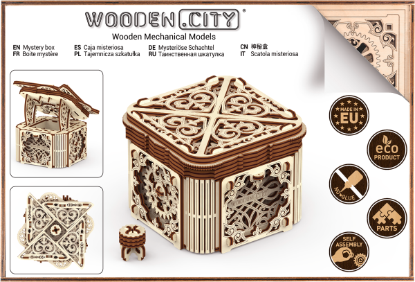 Jak nejlépe uchovávat tajemství a poklady? K tomu skvěle poslouží dřevěná mechanická schránka inspirovaná legendou o Pátém elementu. Díky jedinečnému designu a překvapivým detailům tohoto modelu bude vaše trávení času plné zábavy a skvělých emocí. Jak tajemnou skříňku otevřít, není tak snadné uhodnout. Ten, kdo ji obdrží jako hotový dárek, bude muset chvíli přemýšlet. Model je zhmotněním uměleckého řemesla: - víko se otevírá klíčem, který spojuje 4 trojúhelníky, - čtyři živly: mysl, tělo, zrak a sluch, - pátým je láska, která otevře všechny zámky. 3D puzzle WOODEN CITY Mystery Box je neobvyklým dárkem pro milovníky krásy a překvapení. Obtížnost: 4 z 5 (dle rozdělení Wooden City) Orientační doba na složení: 5 hodin Dřevěné 3D puzzle WOODEN CITY jsou detailně propracované funkční mechanické modely, které se skládají bez lepidla nebo nářadí. Jsou vyrobeny z ekologických dřevěných materiálů - kvalitní březové překližky. S mechanickými dřevěnými puzzle WOODEN CITY zažijete hodiny zábavy při skládání a poznáte převody, gumičkové motory, ozubená kolečka a další součástky z bezprostřední blízkosti.
