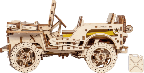 Naše 3D puzzle 4×4 slavného amerického terénního vozidla . Tento model je po sestavení složitým mechanismem s jemnými detaily. Je to předchůdce dnešních SUV, vozidlo s mužným charakterem! Během druhé světové války zahájila americká automobilka Willys-Overland Motors výrobu svého legendárního armádního džípu Willys MB. V roce 1941 byla zahájena sériová výroba tohoto vojenského užitkového vozidla, které bylo okamžitě ve velkém množství nasazeno spojeneckými silami. Do historie se zapsaly jako spolehlivé, obratné a funkční. Byl to skutečně "technický průlom" a skutečný "válečný motor". Dnes jsou džíp i jeho nástupce, SUV, drahá terénní vozidla určená pro odolné jedince. Překonávají překážky, prach, cesty a nebezpečí. Model s vlastnostmi skutečného vozidla: