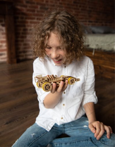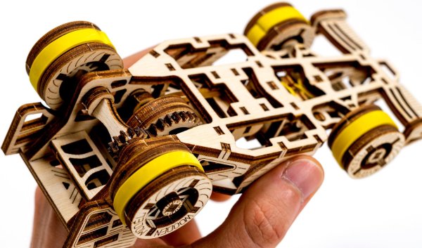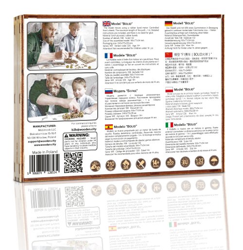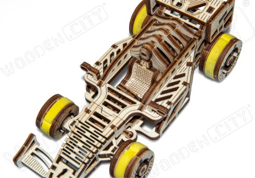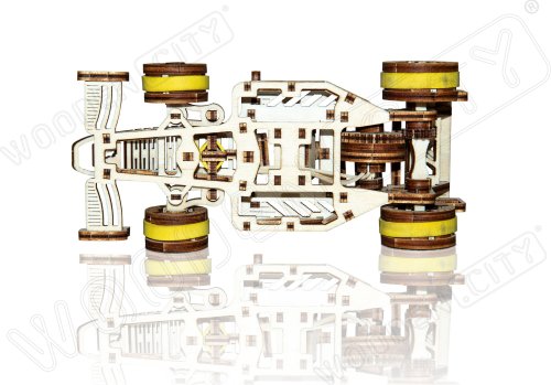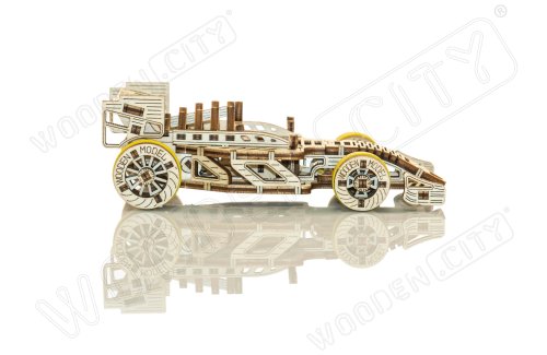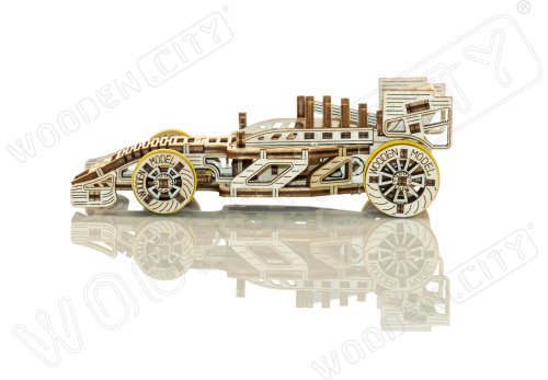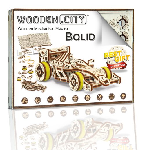A vítězem se stává... Bolid! Jedna z hvězd závodních vozů s předními otočnými koly, setrvačníkovým mechanismem a vratným kolem. Model se pohybuje pomocí gumičkového motoru - maximální dojezd na jedno natažení je 45 cm. Jsou sportovní auta vaší vášní? Tak tento model bude skvělým doplňkem vaší sbírky. Sestavte si ho společně se svým dobrým kamarádem, pořiďte si ještě jedno dřevěné autíčko a uspořádejte si doma závod. Kdo zvítězí? Model má několik detailů skutečného závodního vozu: - sedačka pro závodníka, - pogumovaná kola, - přední otočná kola, - setvačníkový mechanismus, - vratné kolo. 3D puzzle WOODEN CITY Bolid je skvělým doplňkem sbírky sportovních aut. Obtížnost: 3 z 5 (dle rozdělení Wooden City) Orientační doba na složení: 3,5 - 4 hodiny Měřítko: 1:32 Dřevěné 3D puzzle WOODEN CITY jsou detailně propracované funkční mechanické modely, které se skládají bez lepidla nebo nářadí. Jsou vyrobeny z ekologických dřevěných materiálů - kvalitní březové překližky. S mechanickými dřevěnými puzzle WOODEN CITY zažijete hodiny zábavy při skládání a poznáte převody, gumičkové motory, ozubená kolečka a další součástky z bezprostřední blízkosti.