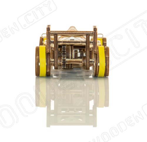 UPOZORNĚNÍ: K sestavení je třeba ulamovací nůž, nůžky, brusný papír a svíčku z vosku (není součástí výrobku). Pro správné fungování a bezproblémový provoz je potřeba nápravy a ozubená kolečka navoskovat. Rozměr složeného puzzle cca 15,6 x 17,5 x 5,4 cm