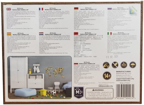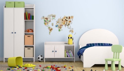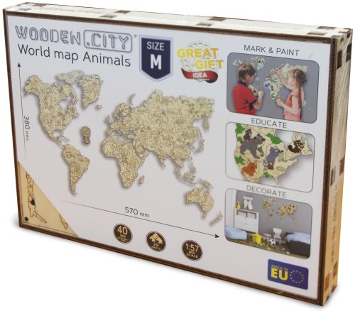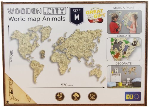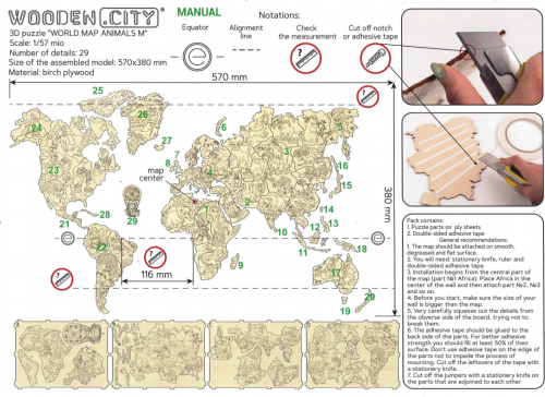 Dřevěné "puzzle" se zvířátky zobrazující mapu celého světa poslouží jako krásná dekorace dětského pokoje, která přímo vybízí k vymalování. Pomocí oboustranné lepicí pásky ji snadno umístíte na zeď pokojíčku, dveře nebo třeba skříň. Originální dřevěná mapa světa je vyřezaná laserem z kvalitní břízové překližky.