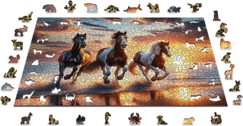 Laserem vyřezávané dřevěné puzzle WOODEN CITY se svými speciálně tvarovanými dílky je neskutečně zábavné. Část dílků je vyrobena ve tvaru zvířat , jejichž výsledný efekt umocňují laserem zvýrazněné detaily. Tyto dílky mohou samostatně stát jako drobné figurky. Skládání puzzle s různotvarými dílky je obtížnější a představuje větší výzvu, než skládání klasického puzzle. Značka WOODEN CITY kromě unikátního konceptu puzzle nezapomíná na ekologii, u těchto výrobku proto nenaleznete žádné plastové obaly .