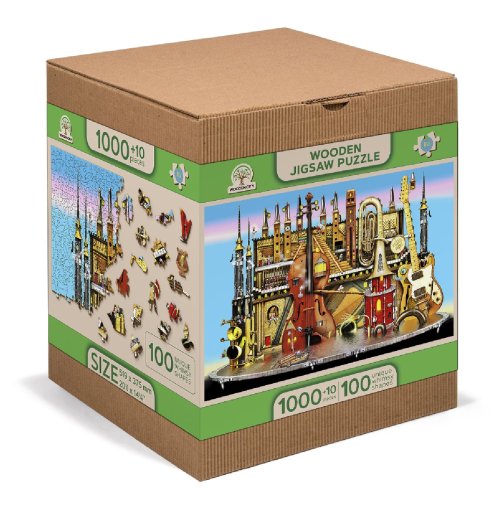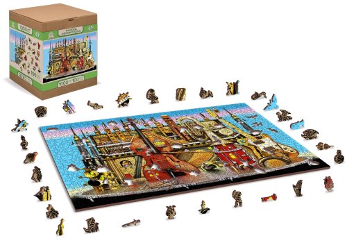 Laserem vyřezávané dřevěné puzzle WOODEN CITY se svými speciálně tvarovanými dílky je neskutečně zábavné. Část dílků je vyrobena ve tvaru zvířat, staveb nebo předmětů , jejichž výsledný efekt umocňují laserem zvýrazněné detaily. Tyto dílky mohou samostatně stát jako drobné figurky. Skládání puzzle s různotvarými dílky je obtížnější a představuje větší výzvu, než skládání klasického puzzle. Puzzle je navíc oboustranné , skládat můžete jak podle obrázku (lícová strana), tak podle tvaru (rubová strana se vzorem). Značka WOODEN CITY kromě unikátního konceptu puzzle nezapomíná na ekologii, u těchto výrobku proto nenaleznete žádné plastové obaly .