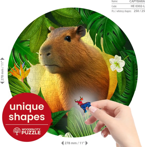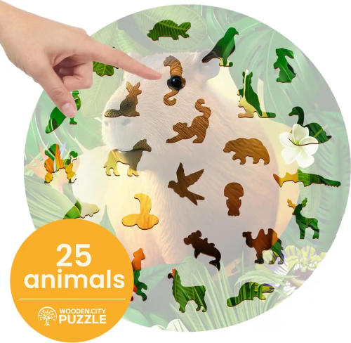 Laserem vyřezávané dřevěné puzzle WOODEN CITY se svými speciálně tvarovanými dílky je neskutečně zábavné. Část dílků je vyrobena ve tvaru zvířat , jejichž výsledný efekt umocňují laserem zvýrazněné detaily. Tyto dílky mohou samostatně stát jako drobné figurky. Skládání puzzle s různotvarými dílky je obtížnější a představuje větší výzvu, než skládání klasického puzzle. Značka WOODEN CITY kromě unikátního konceptu puzzle nezapomíná na ekologii, u těchto výrobku proto nenaleznete žádné plastové obaly .