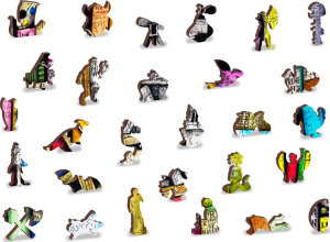 Laserem vyřezávané dřevěné puzzle WOODEN CITY se svými speciálně tvarovanými dílky je neskutečně zábavné. Část dílků je vyrobena ve tvaru zvířat, staveb nebo předmětů , jejichž výsledný efekt umocňují laserem zvýrazněné detaily. Tyto dílky mohou samostatně stát jako drobné figurky. Skládání puzzle s různotvarými dílky je obtížnější a představuje větší výzvu, než skládání klasického puzzle. Puzzle je navíc oboustranné , skládat můžete jak podle obrázku (lícová strana), tak podle tvaru (rubová strana se vzorem).