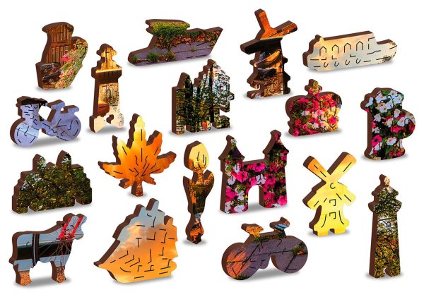 s unikátně tvarovanými dílky představující známé stavby, předměty nebo zvířata podle tématu motivu vyšší obtížnost při menším počtu dílků - skládání puzzle s různotvarými dílky je náročnější oboustranné puzzle 2v1 - z jedné strany je obrázek, z druhé opakující se vzor pro skládání podle tvaru hladké hrany bez třísek díky preciznímu laserovému zpracování vyrobeno z pevné dřevovláknité HDF desky o síle 3-4mm uvnitř balení je samostatná předloha na skládání EKO Friendly 100% bez plastových obalů - puzzle je v papírovém sáčku uvnitř papírové krabičky vhodný dárek pro jakoukoliv příležitost