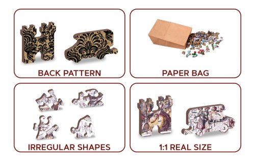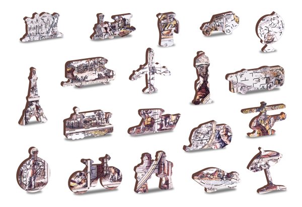 s unikátně tvarovanými dílky představující známé stavby, předměty nebo zvířata podle tématu motivu vyšší obtížnost při menším počtu dílků - skládání puzzle s různotvarými dílky je náročnější oboustranné puzzle 2v1 - z jedné strany je obrázek, z druhé opakující se vzor pro skládání podle tvaru hladké hrany bez třísek díky preciznímu laserovému zpracování vyrobeno z pevné dřevovláknité HDF desky o síle 3-4mm uvnitř balení je samostatná předloha na skládání EKO Friendly 100% bez plastových obalů - puzzle je v papírovém sáčku uvnitř papírové krabičky vhodný dárek pro jakoukoliv příležitost