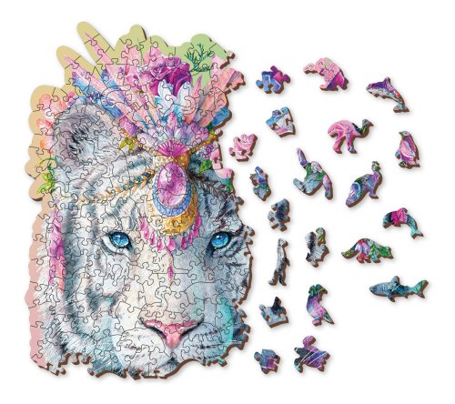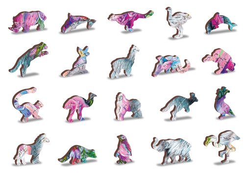 s unikátně tvarovanými dílky ve tvaru zvířat vyšší obtížnost při menším počtu dílků - skládání puzzle s různotvarými dílky je náročnější hladké hrany bez třísek díky preciznímu laserovému zpracování vyrobeno z pevné dřevovláknité HDF desky o síle 3-4mm uvnitř balení je samostatná předloha na skládání EKO Friendly 100% bez plastových obalů - puzzle je v papírovém sáčku uvnitř papírové krabičky vhodný dárek pro jakoukoliv příležitost
