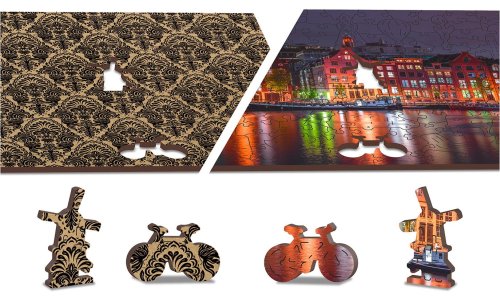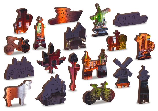 s unikátně tvarovanými dílky představující známé stavby, předměty nebo zvířata podle tématu motivu vyšší obtížnost při menším počtu dílků - skládání puzzle s různotvarými dílky je náročnější oboustranné puzzle 2v1 - z jedné strany je obrázek, z druhé opakující se vzor pro skládání podle tvaru hladké hrany bez třísek díky preciznímu laserovému zpracování vyrobeno z pevné dřevovláknité HDF desky o síle 3-4mm uvnitř balení je samostatná předloha na skládání EKO Friendly 100% bez plastových obalů - puzzle je v papírovém sáčku uvnitř papírové krabičky vhodný dárek pro jakoukoliv příležitost