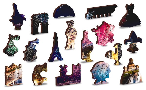 s unikátně tvarovanými dílky představující známé stavby, předměty nebo zvířata podle tématu motivu vyšší obtížnost při menším počtu dílků - skládání puzzle s různotvarými dílky je náročnější oboustranné puzzle 2v1 - z jedné strany je obrázek, z druhé opakující se vzor pro skládání podle tvaru hladké hrany bez třísek díky preciznímu laserovému zpracování vyrobeno z pevné dřevovláknité HDF desky o síle 3-4mm uvnitř balení je samostatná předloha na skládání EKO Friendly 100% bez plastových obalů - puzzle je v papírovém sáčku uvnitř papírové krabičky vhodný dárek pro jakoukoliv příležitost