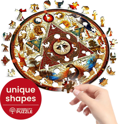 Laserem vyřezávané dřevěné puzzle WOODEN CITY se svými speciálně tvarovanými dílky je neskutečně zábavné. Část dílků je vyrobena ve tvaru zvířat , jejichž výsledný efekt umocňují laserem zvýrazněné detaily. Tyto dílky mohou samostatně stát jako drobné figurky. Skládání puzzle s různotvarými dílky je obtížnější a představuje větší výzvu, než skládání klasického puzzle. Značka WOODEN CITY kromě unikátního konceptu puzzle nezapomíná na ekologii, u těchto výrobku proto nenaleznete žádné plastové obaly .
