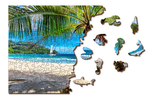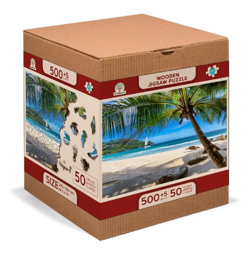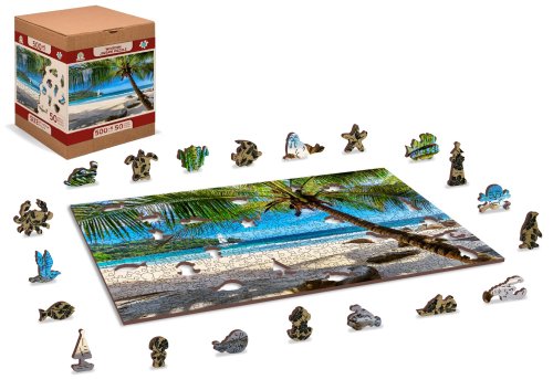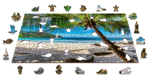 WOODEN CITY Dřevěné puzzle Pláž na Paradise Island, Karibské moře 2v1, 505 dílků EKO
