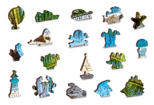 Laserem vyřezávané dřevěné puzzle WOODEN CITY se svými speciálně tvarovanými dílky je neskutečně zábavné. Část dílků je vyrobena ve tvaru zvířat, staveb nebo předmětů , jejichž výsledný efekt umocňují laserem zvýrazněné detaily. Tyto dílky mohou samostatně stát jako drobné figurky. Skládání puzzle s různotvarými dílky je obtížnější a představuje větší výzvu, než skládání klasického puzzle. Puzzle je navíc oboustranné , skládat můžete jak podle obrázku (lícová strana), tak podle tvaru (rubová strana se vzorem). Značka WOODEN CITY kromě unikátního konceptu puzzle nezapomíná na ekologii, u těchto výrobku proto nenaleznete žádné plastové obaly .
