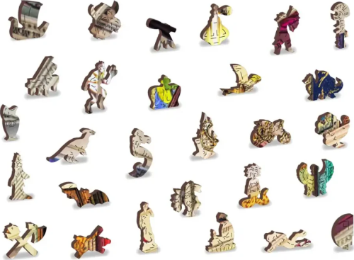 Laserem vyřezávané dřevěné puzzle WOODEN CITY se svými speciálně tvarovanými dílky je neskutečně zábavné. Část dílků je vyrobena ve tvaru zvířat, staveb nebo předmětů , jejichž výsledný efekt umocňují laserem zvýrazněné detaily. Tyto dílky mohou samostatně stát jako drobné figurky. Skládání puzzle s různotvarými dílky je obtížnější a představuje větší výzvu, než skládání klasického puzzle. Puzzle je navíc oboustranné , skládat můžete jak podle obrázku (lícová strana), tak podle tvaru (rubová strana se vzorem).