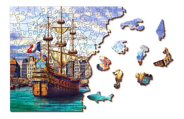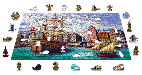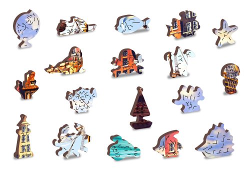 Laserem vyřezávané dřevěné puzzle WOODEN CITY se svými speciálně tvarovanými dílky je neskutečně zábavné. Část dílků je vyrobena ve tvaru zvířat, staveb nebo předmětů , jejichž výsledný efekt umocňují laserem zvýrazněné detaily. Tyto dílky mohou samostatně stát jako drobné figurky. Skládání puzzle s různotvarými dílky je obtížnější a představuje větší výzvu, než skládání klasického puzzle. Puzzle je navíc oboustranné , skládat můžete jak podle obrázku (lícová strana), tak podle tvaru (rubová strana se vzorem). Značka WOODEN CITY kromě unikátního konceptu puzzle nezapomíná na ekologii, u těchto výrobku proto nenaleznete žádné plastové obaly .
