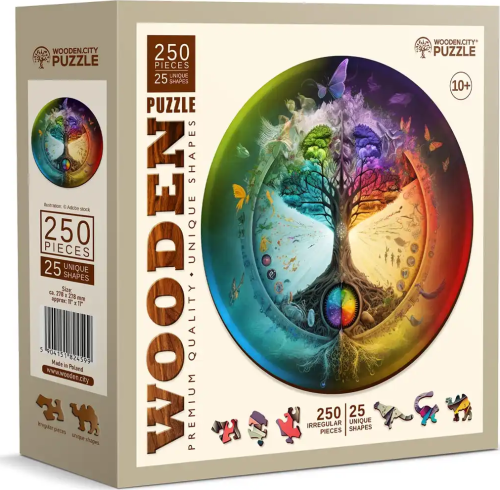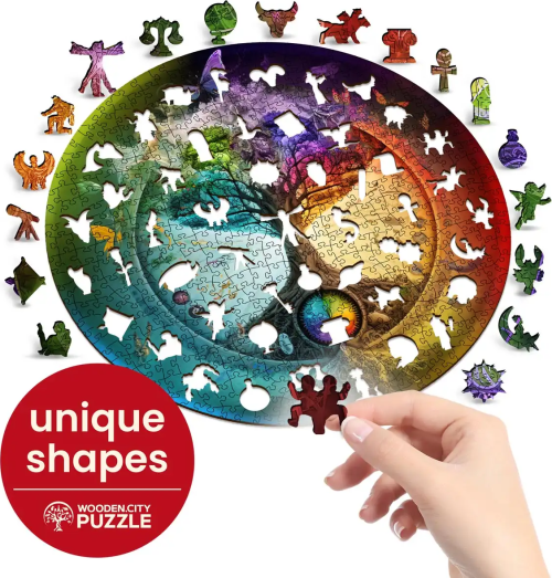 Laserem vyřezávané dřevěné puzzle WOODEN CITY se svými speciálně tvarovanými dílky je neskutečně zábavné. Část dílků je vyrobena ve tvaru zvířat , jejichž výsledný efekt umocňují laserem zvýrazněné detaily. Tyto dílky mohou samostatně stát jako drobné figurky. Skládání puzzle s různotvarými dílky je obtížnější a představuje větší výzvu, než skládání klasického puzzle. Značka WOODEN CITY kromě unikátního konceptu puzzle nezapomíná na ekologii, u těchto výrobku proto nenaleznete žádné plastové obaly .