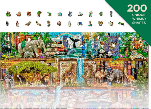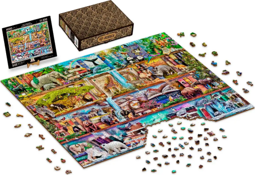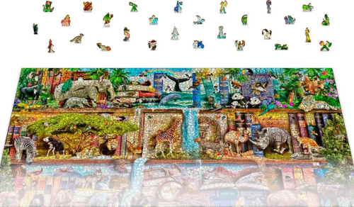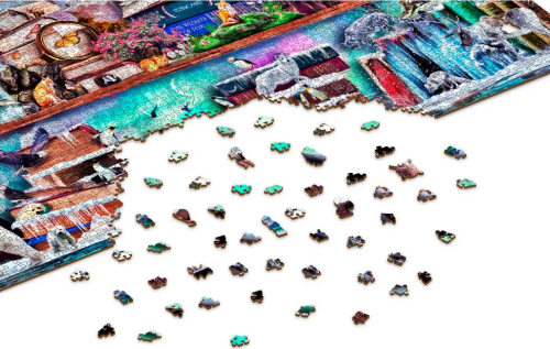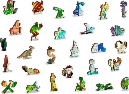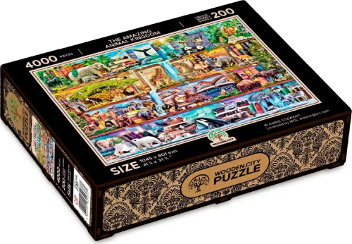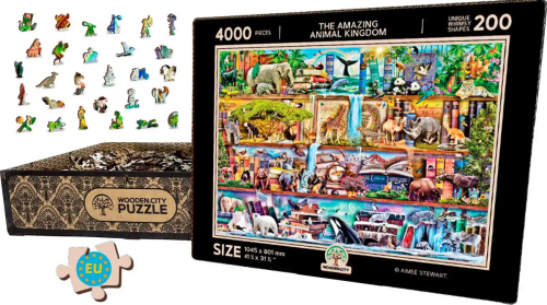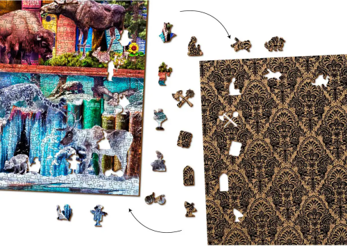 Laserem vyřezávané dřevěné puzzle WOODEN CITY se svými speciálně tvarovanými dílky je neskutečně zábavné. Část dílků je vyrobena ve tvaru zvířat, staveb nebo předmětů , jejichž výsledný efekt umocňují laserem zvýrazněné detaily. Tyto dílky mohou samostatně stát jako drobné figurky. Skládání puzzle s různotvarými dílky je obtížnější a představuje větší výzvu, než skládání klasického puzzle. Puzzle je navíc oboustranné , skládat můžete jak podle obrázku (lícová strana), tak podle tvaru (rubová strana se vzorem).