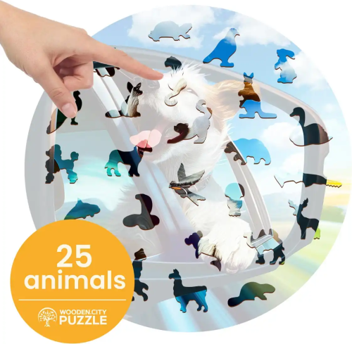 Laserem vyřezávané dřevěné puzzle WOODEN CITY se svými speciálně tvarovanými dílky je neskutečně zábavné. Část dílků je vyrobena ve tvaru zvířat , jejichž výsledný efekt umocňují laserem zvýrazněné detaily. Tyto dílky mohou samostatně stát jako drobné figurky. Skládání puzzle s různotvarými dílky je obtížnější a představuje větší výzvu, než skládání klasického puzzle. Značka WOODEN CITY kromě unikátního konceptu puzzle nezapomíná na ekologii, u těchto výrobku proto nenaleznete žádné plastové obaly .