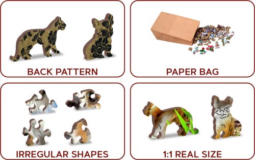 s unikátně tvarovanými dílky představující známé stavby, předměty nebo zvířata podle tématu motivu vyšší obtížnost při menším počtu dílků - skládání puzzle s různotvarými dílky je náročnější oboustranné puzzle 2v1 - z jedné strany je obrázek, z druhé opakující se vzor pro skládání podle tvaru hladké hrany bez třísek díky preciznímu laserovému zpracování vyrobeno z pevné dřevovláknité HDF desky o síle 3-4mm uvnitř balení je samostatná předloha na skládání EKO Friendly 100% bez plastových obalů - puzzle je v papírovém sáčku uvnitř papírové krabičky vhodný dárek pro jakoukoliv příležitost