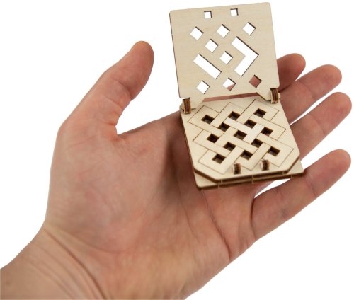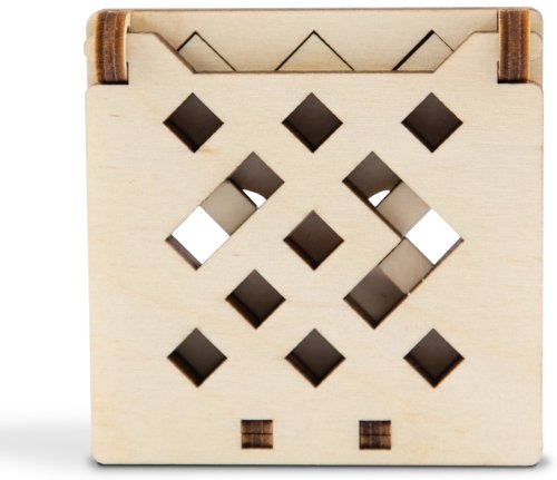 rychlé sestavení bez použití lepidla nebo nástrojů kompaktní velikost, vhodná na cesty součástí je krabička, aby se žádný dílek neztratil vyrobeno z kvalitní překližky hlavolam můžete nechat v přírodním provedení nebo nabarvit (např. fixy) vyrobeno v EU vhodné jeko dárek