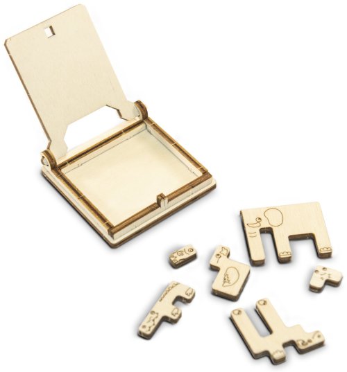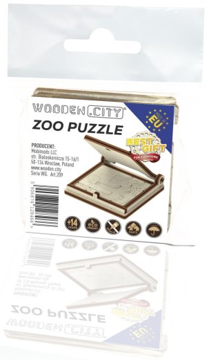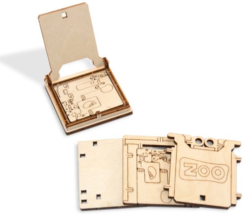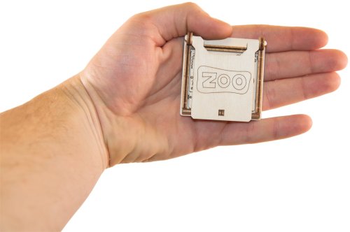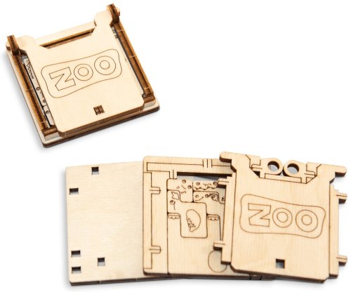 Dřevěné 3D puzzle, které po složení poslouží jako kapesní hlavolam pro jednoho k ukrácení dlouhé chvíle. Cílem hlavolamu Zoo je uspořádat dílky tak, aby se všechny vešly do vymezeného prostoru.