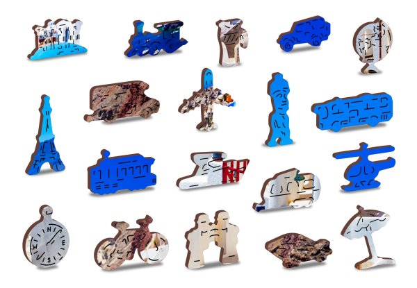 s unikátně tvarovanými dílky představující známé stavby, předměty nebo zvířata podle tématu motivu vyšší obtížnost při menším počtu dílků - skládání puzzle s různotvarými dílky je náročnější oboustranné puzzle 2v1 - z jedné strany je obrázek, z druhé opakující se vzor pro skládání podle tvaru hladké hrany bez třísek díky preciznímu laserovému zpracování vyrobeno z pevné dřevovláknité HDF desky o síle 3-4mm uvnitř balení je samostatná předloha na skládání EKO Friendly 100% bez plastových obalů - puzzle je v papírovém sáčku uvnitř papírové krabičky vhodný dárek pro jakoukoliv příležitost
