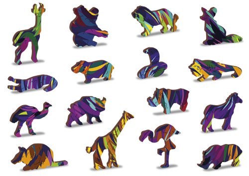 Laserem vyřezávané dřevěné puzzle WOODEN CITY se svými speciálně tvarovanými dílky je neskutečně zábavné. Část dílků je vyrobena ve tvaru zvířat , jejichž výsledný efekt umocňují laserem zvýrazněné detaily. Tyto dílky mohou samostatně stát jako drobné figurky. Skládání puzzle s různotvarými dílky je obtížnější a představuje větší výzvu, než skládání klasického puzzle. Značka WOODEN CITY kromě unikátního konceptu puzzle nezapomíná na ekologii, u těchto výrobku proto nenaleznete žádné plastové obaly .