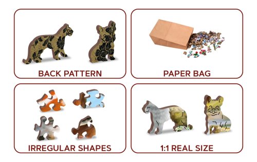 s unikátně tvarovanými dílky představující známé stavby, předměty nebo zvířata podle tématu motivu vyšší obtížnost při menším počtu dílků - skládání puzzle s různotvarými dílky je náročnější oboustranné puzzle 2v1 - z jedné strany je obrázek, z druhé opakující se vzor pro skládání podle tvaru hladké hrany bez třísek díky preciznímu laserovému zpracování vyrobeno z pevné dřevovláknité HDF desky o síle 3-4mm uvnitř balení je samostatná předloha na skládání EKO Friendly 100% bez plastových obalů - puzzle je v papírovém sáčku uvnitř papírové krabičky vhodný dárek pro jakoukoliv příležitost
