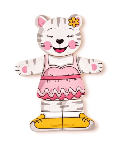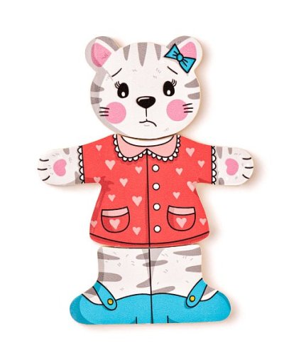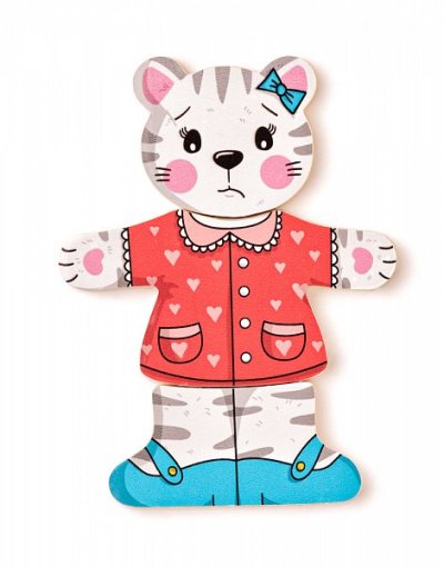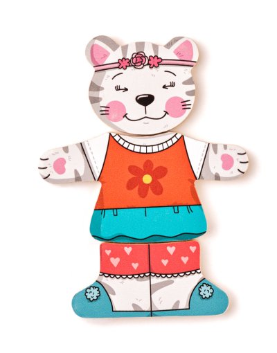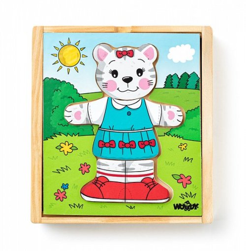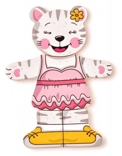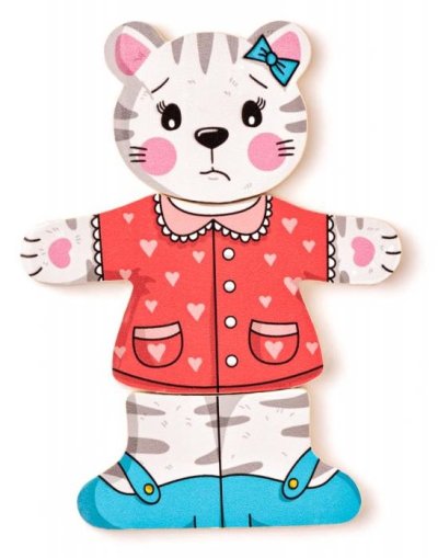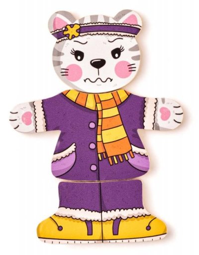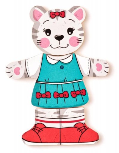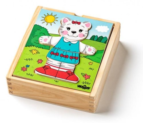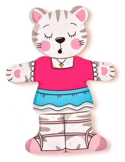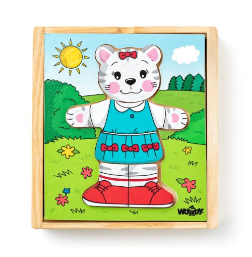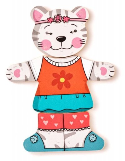 Děti zde mají možnost si dle vlastní fantazie oblékat a měnit postavičku kočičky Mají k dispozici obličeje znázorňující různé nálady, tělíčka a nožičky kočičky s různými outfity Rozvijí fantazii a schopnost logického myšlení Baleno v praktické dřevěné krabičce