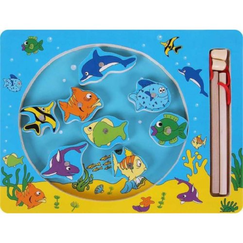 Barevné dřevěné rybičky mají v sobě kovový dílek, za který je ulovíte magnetickou udicí Hra je vhodná na procvičování motoriky a trpělivosti