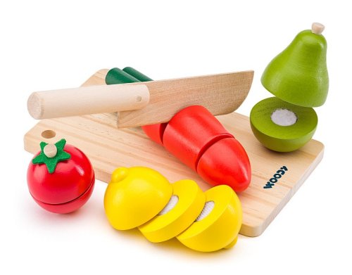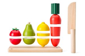 Krájení na prkénku je hračka vybavená suchými zipy, které umožňují skládat znovu a znovu "nakrájené" potraviny Ideální hračka pro rozvoj motoriky a logického myšlení