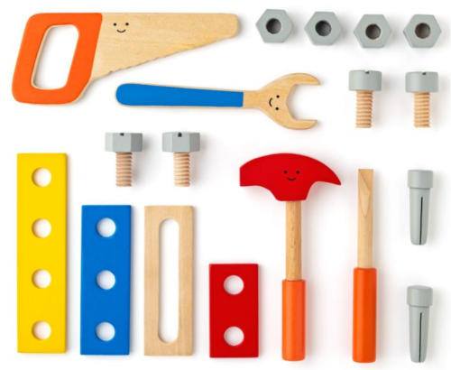 Tato hračka formou hry rozvíjí jemnou motoriku a technické chápání Brašna současně slouží jako základna pro práci s podložkami a šrouby Vše je vyrobeno z kvalitního dřeva