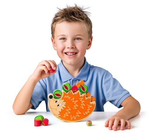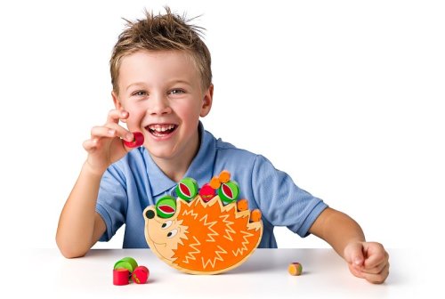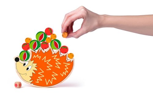 Hra a didaktická pomůcka v jednom Hráči hází kostkou, na jejíž stranách jsou barevné puntíky Barva hráči napoví, které ovoce bude na ježka pokládat Úkolem hráče je položit na ježka ovoce tak, aby se ježek nepřevážil a ovoce ze svého hřbetu nevysypal