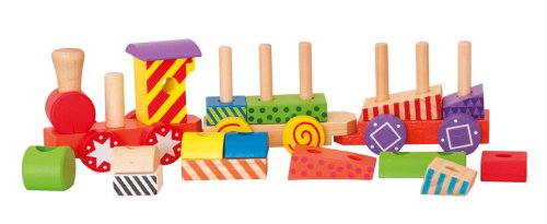Úkolem dítěte je nasunout kostky vlaku na tyčky tak, aby byl naložen celý náklad Při této činnosti děti zdokonalují jemnou motoriku, logiku a koordinaci pohybů