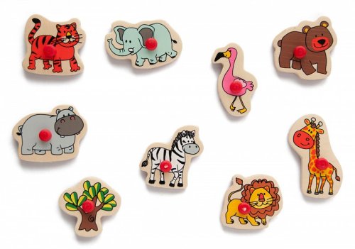 Kombinace razítek a puzzle Na spodní straně každého zvířátka je gumové tiskátko Na ploše tohoto výrobku pro ně najdete barevný polštářek Děti si mohou vybarvovat natištěná zvířátka a skládat z nich celé obrázkové kompozice