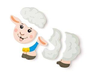 Masivní puzzle pro nejmenší děti Složeno z pěti velkých kousků, které se dají snadno uchopit Na základně hrací desky vytištěna černobílá kresba Ta usnadní orientaci a správné poskládání obrázku Design pochází z dílny českého výtvarníka