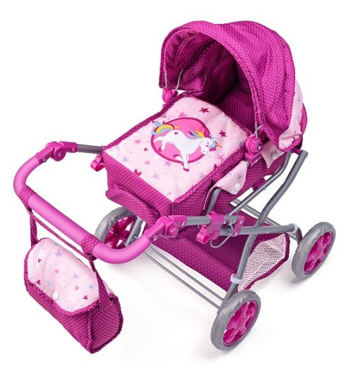 Design kočárku s jednorožcem reaguje na aktuální módní trend Tento kočárek je doporučen pro holčičky, které si rády hrají a vžívají se do role dospělých maminek Hra podporuje představivost, rozvíjí sociální cítění, paměť a hrubou motoriku Kočárek pro panenky je vyroben z kombinace materiálů látka, kov a plast Jeho montáž je jednoduchá, bez šroubování Návod k montáži naleznete uvnitř výrobku Součástí výrobku je přenosná korbička na miminko a síťovaný košík