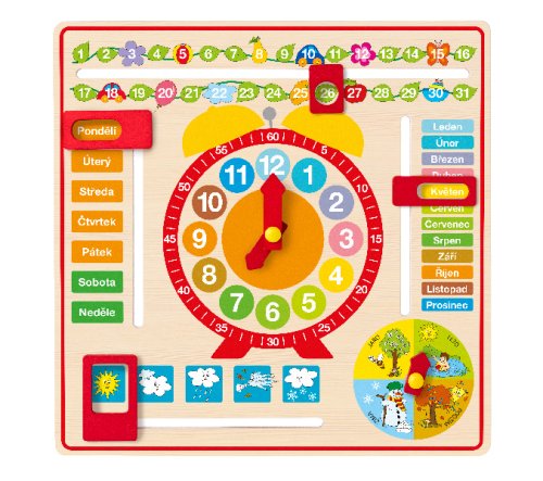 S touto hračkou se dítě učí používat kalendář Ručně si nastavuje hodiny, datum, den v týdnu, roční období a počasí