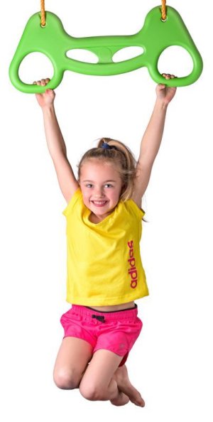 Houpací plastové kruhy spojené do jednoho dílu Umožňují dětem více pohybu a větší svobodu při houpání