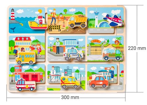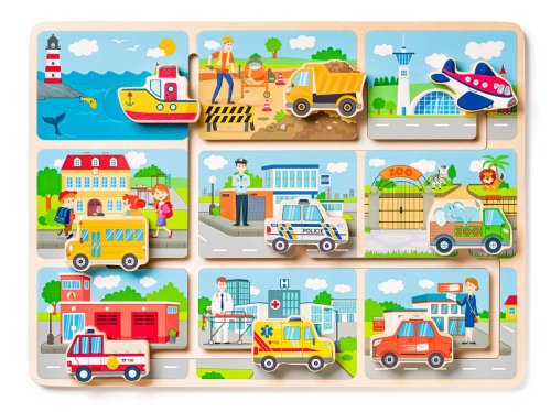 Úkolem dítěte je umístit dopravní prostředky do prostředí, do kterých patří Loď na moře, hasičské auto před hasičskou stanici, nákladní auto na staveniště atd. Cestou se musí vyhýbat ostatním autíčkům a najít si tu správnou cestu ke svému cíli
