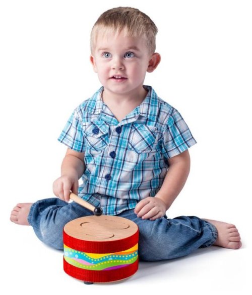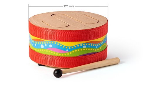 Barevný bubínek pro všechny malé muzikanty je vyroben z kvalitního dřeva. Bubínek učí děti rytmu a koordinaci rukou s ušima.