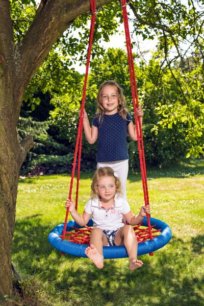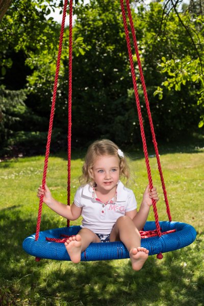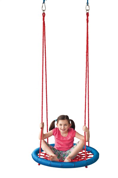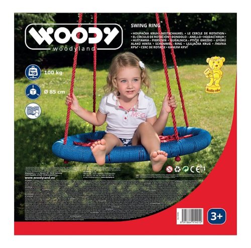 Houpačka se může používat pouze v sedě nebo v leže. Nosnost houpačky je maximálně 100 kg nebo pro 1-2 děti. Průměr houpacího kruhu je 85 cm. Na sedák jsou použity textilní popruhy. Rám je kovový, potažený provazem.