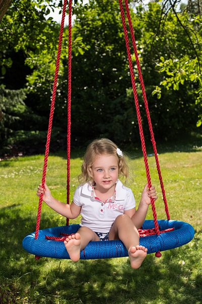 Délka závěsných lan je 170 cm. Houpačka se zavěšuje za kovové kroužky, které jsou provlečené na závěsných lanech. Lana jsou pevně zakončena pevným uzlem ve spodní části kruhu.
